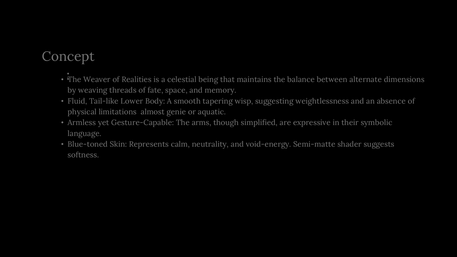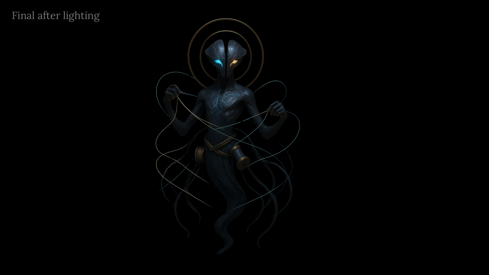 “The Weaver of Realities is an original 3D character crafted through complete sculpting, modelling, and texturing. This project explores a celestial being woven from fate, energy, and cosmic threads, Brought to life with clean topology and cinematic lighting. A blend of creative storytelling and technical 3D artistry.”